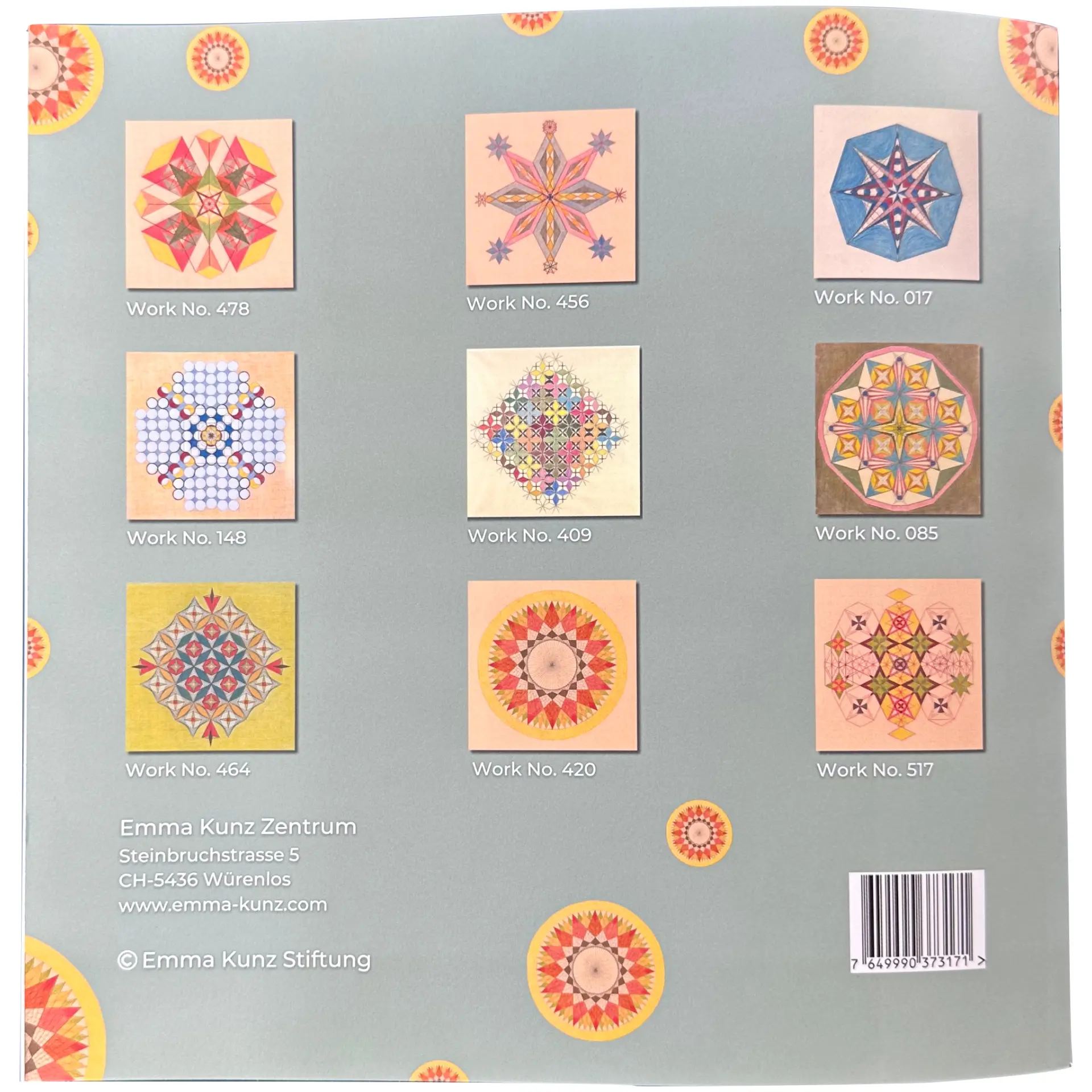1 book 236 pages 3rd edition 2023 German version Artist, researcher, healer. "My pictorial work is destined for the 21st century". This 1941 prediction by Emma Kunz was the occasion to publish, on the threshold of the new century, a comprehensive monograph on the life and work of this visionary in a German and an English version. 236 pages, 105 four-color and numerous documentary photographs, some of which are also in color. Format: 27 cm x 32 cm, cloth-bound book. Compact version, non-folding pages. available in German Update 31.08.2025