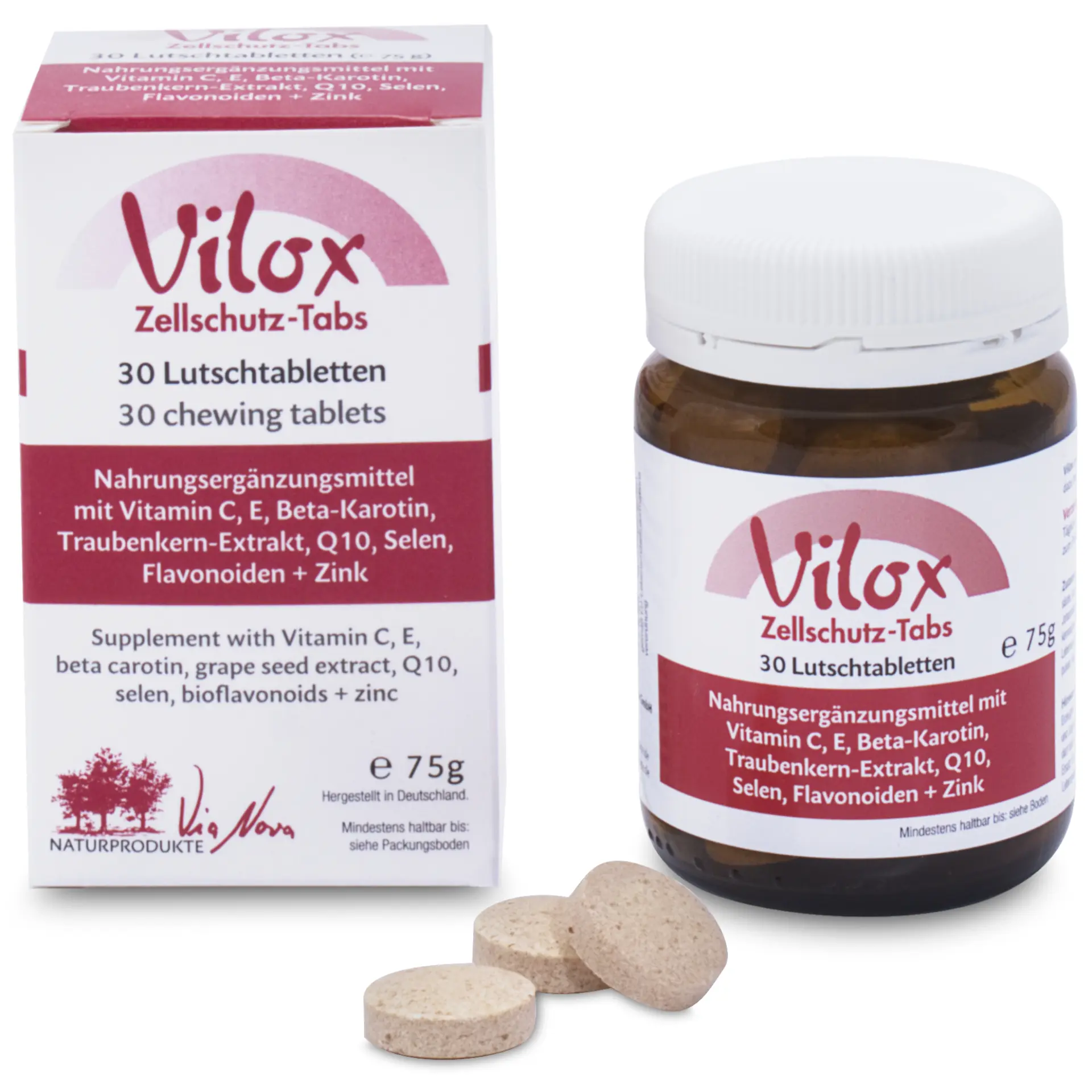 Vilox Zellschutz Tabs könnenden körpereigenen Zellschutz unterstützen und dem altersbedingtem Verschleiß vorbeugen.